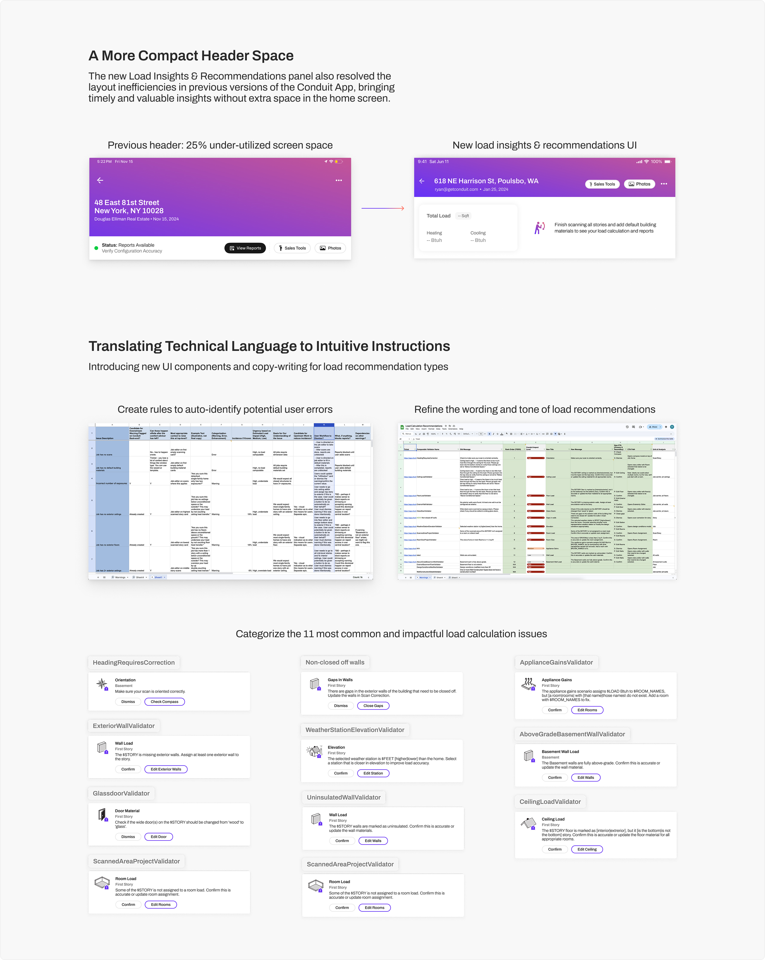 I audited the current workflows in the Conduit App, and exploring different ways to surface load calculation, recommendations & warnings into users’ workflow intuitively.