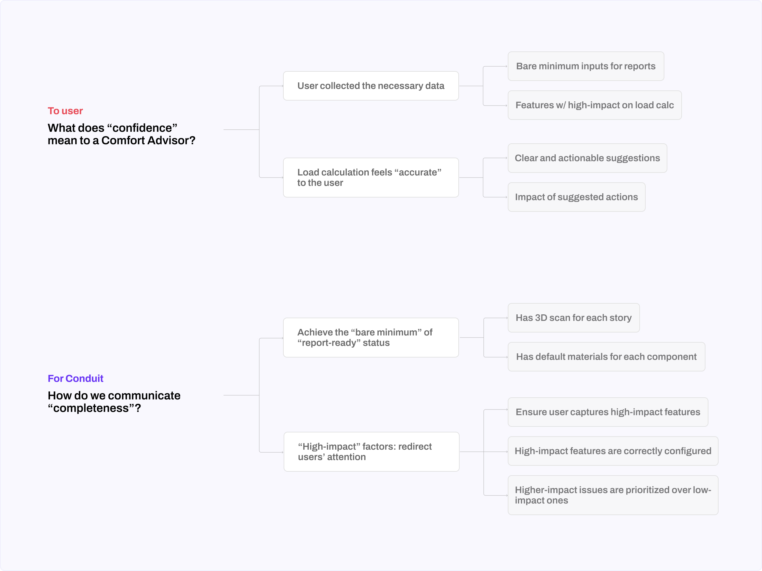 I started by auditing the current workflows in the Conduit App to identify what distracts users from feeling confident about navigating the app and achieving high-accuracy load calculations. Order of operation in the app make it easy to overlook settings, technical terminology doesn’t instantly click with users.