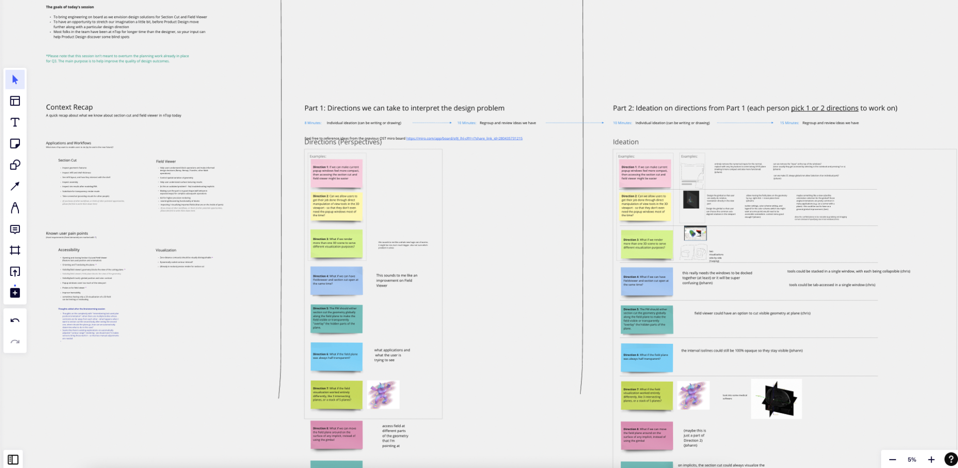 I engaged the entire graphics engineering team to discuss rendering capabilities, and I designed a Miro board template to facilitate and keep track of the inputs from engineers.