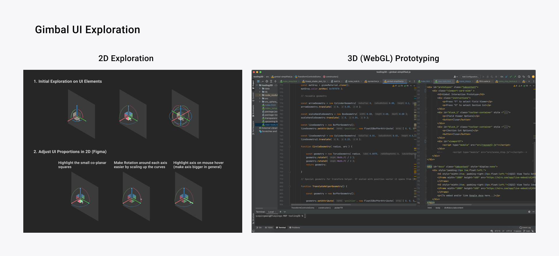 Top improve mouse interactions for transforming view planes, I built a 3D prototype and specified the rendering setup for the improved Gimbal, and hosted the 3D specs on the following website to share easily with PMs and Engineers.