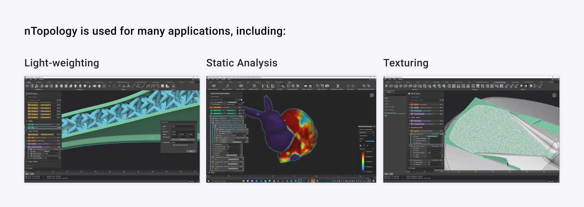 Many industrial manufacturing companies use nTopology (instead of traditional CAD) to iterate on designs that involve intricate geometries and suitable for advanced manufacturing (such as 3D printing).