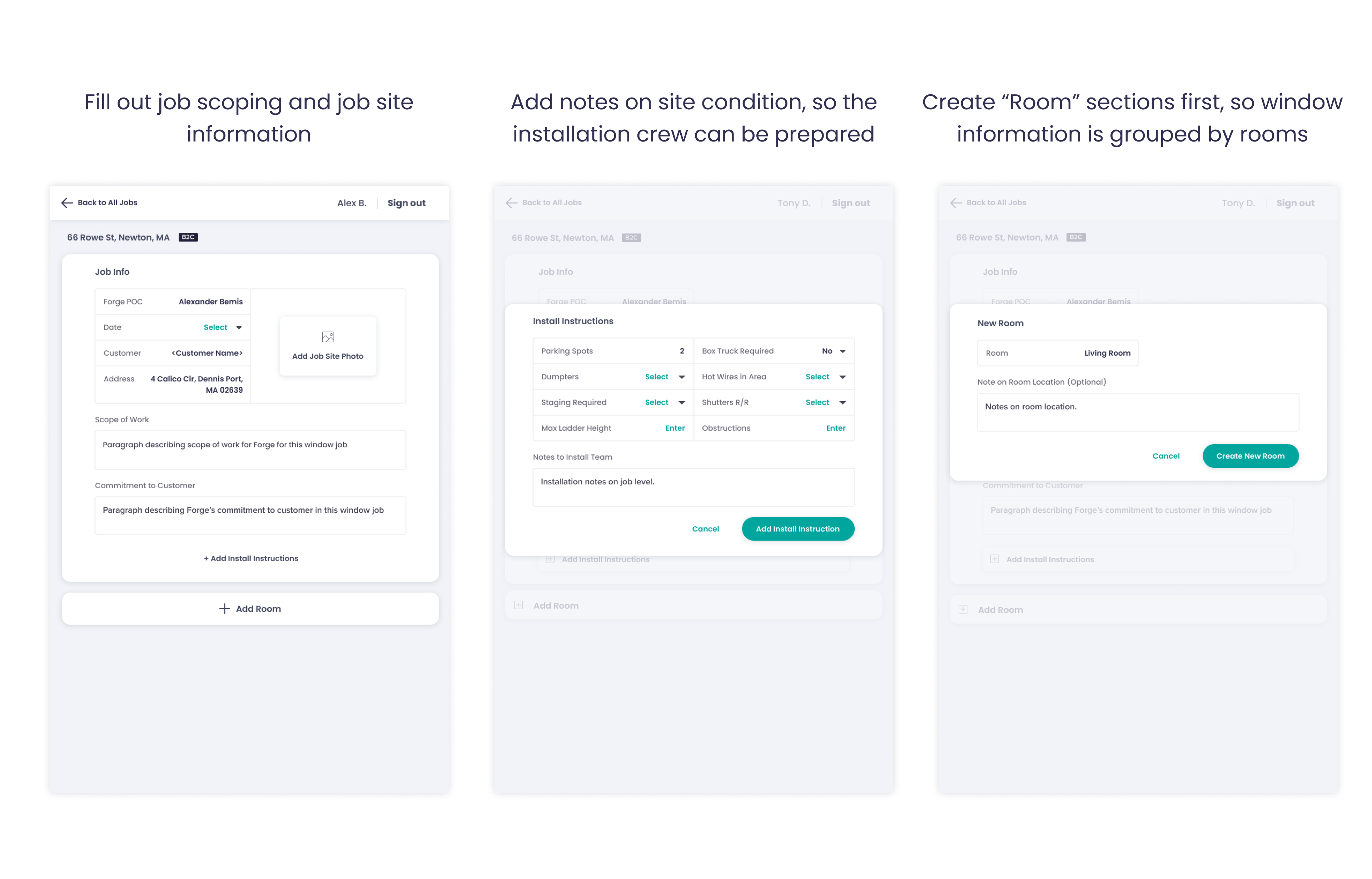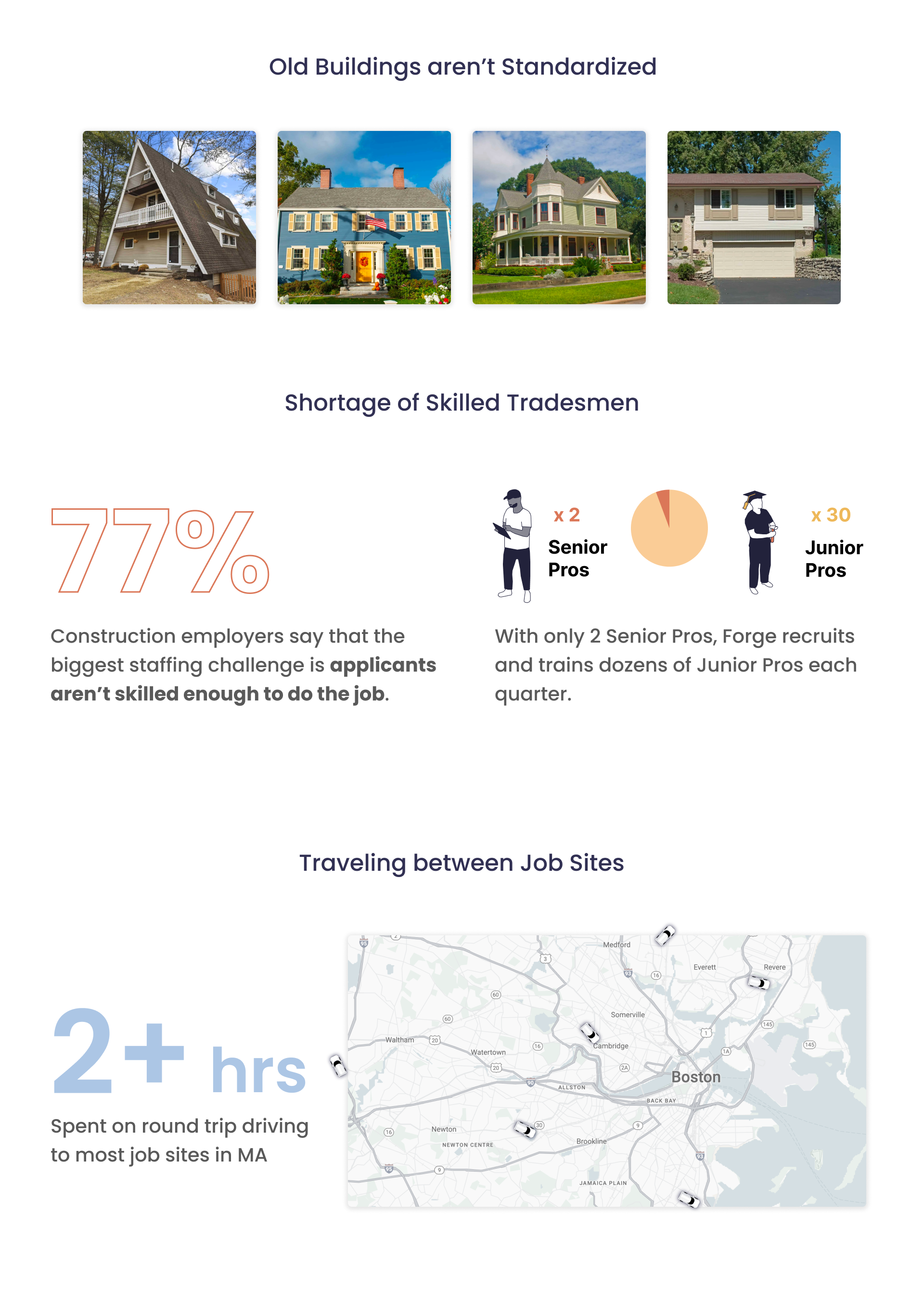In practice, with traveling taking up 60-70% of the Pro’s day, and the fact that Forge only employs 2 senior Pros, it’s impractical for the senior Pro to show up to each job site.