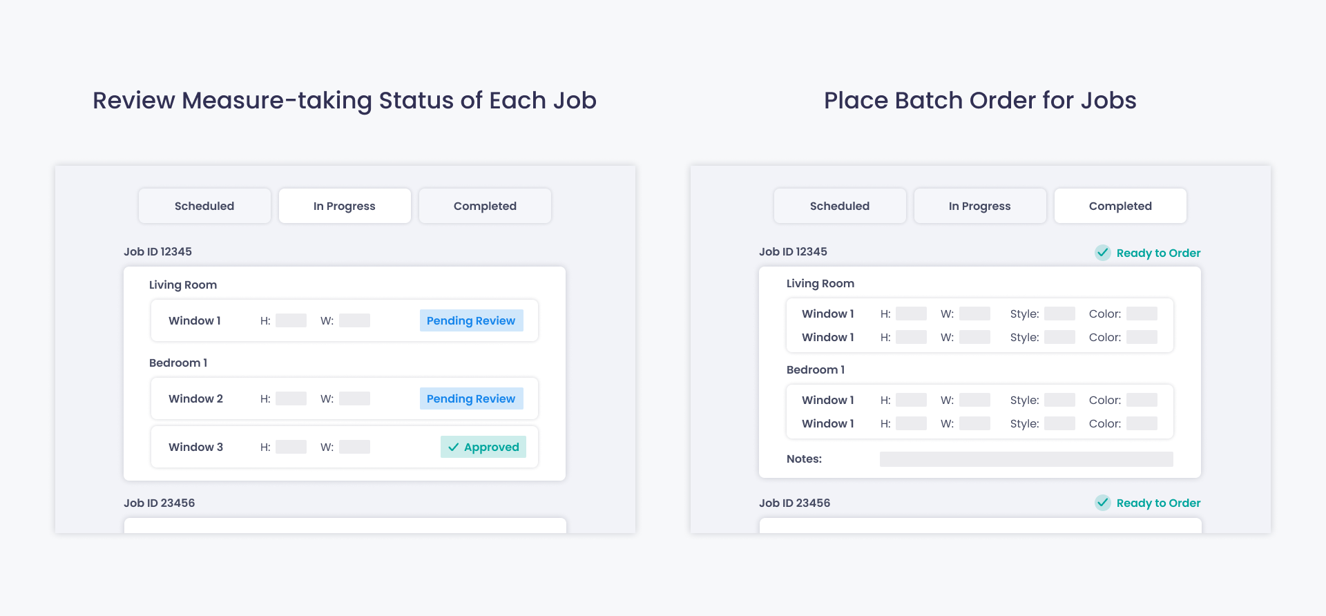 Determine if a window job has all its measurements and specs ready for placing an order with the manufacturer.